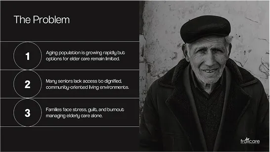 The heart of any pitch deck is the problem narrative. However, identifying the right problem and showcasing it in compelling way that can be easily understood.